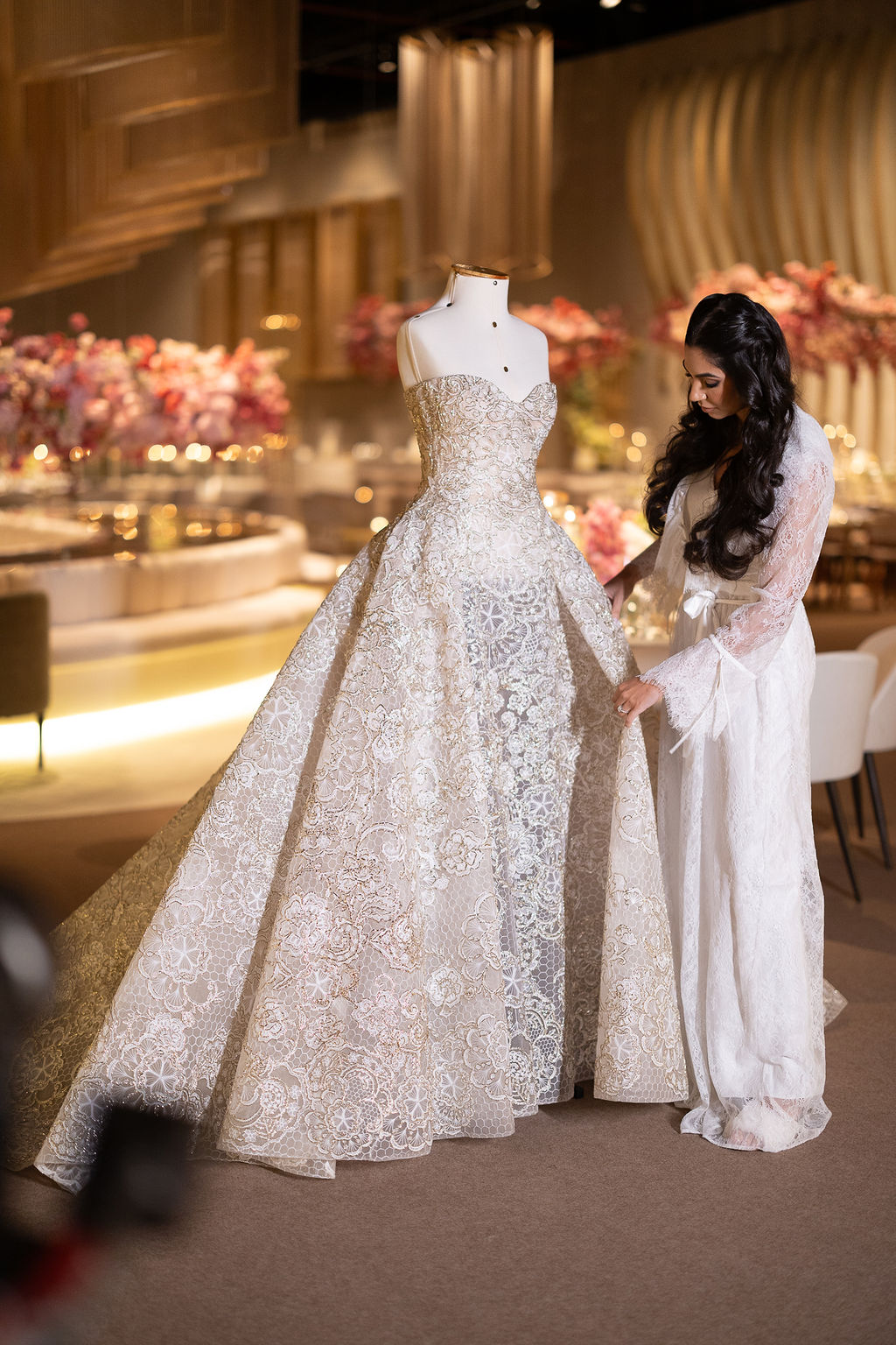 A entrada de Ana Gabriele, ao som de uma peça clássica da Cia Sinfônica, acompanhada pela potente voz de Paulo Benevides, deixou todos os presentes em um estado de encantamento e reverência. O cantor, junto à orquestra, abriu a pista de dança, dando início à festa com uma performance romântica e cheia de elegância.