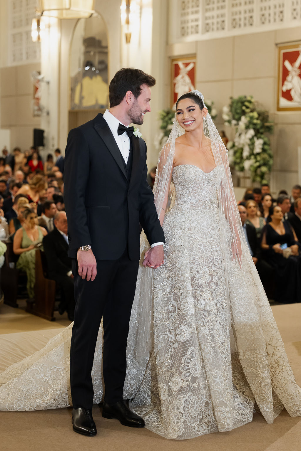 A cerimônia religiosa, marcada por um toque de emoção familiar, contou com a presença da filha do casal, Stella, de dois anos, que foi a protagonista de um dos momentos mais comoventes ao entrar com as alianças. “Esperamos que ela tivesse idade suficiente para participar, porque ela é a nossa maior aliança. Esse casamento foi muito mais do que um sonho meu, foi um ritual para a nossa família”, revelou Ana Gabriele, emocionada.