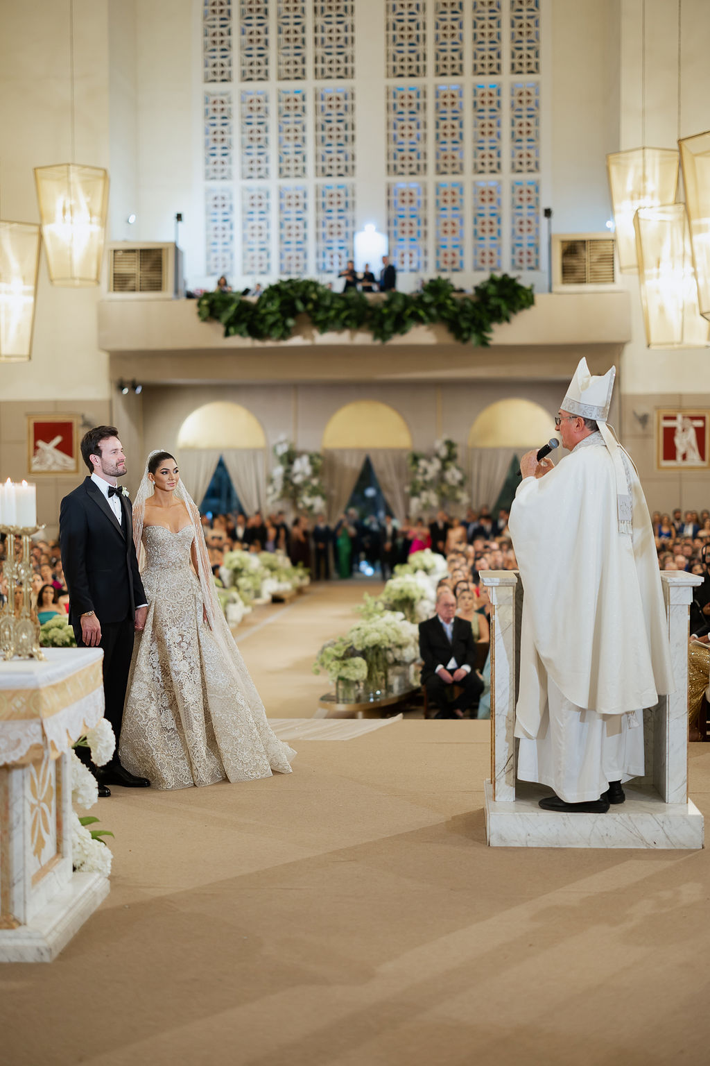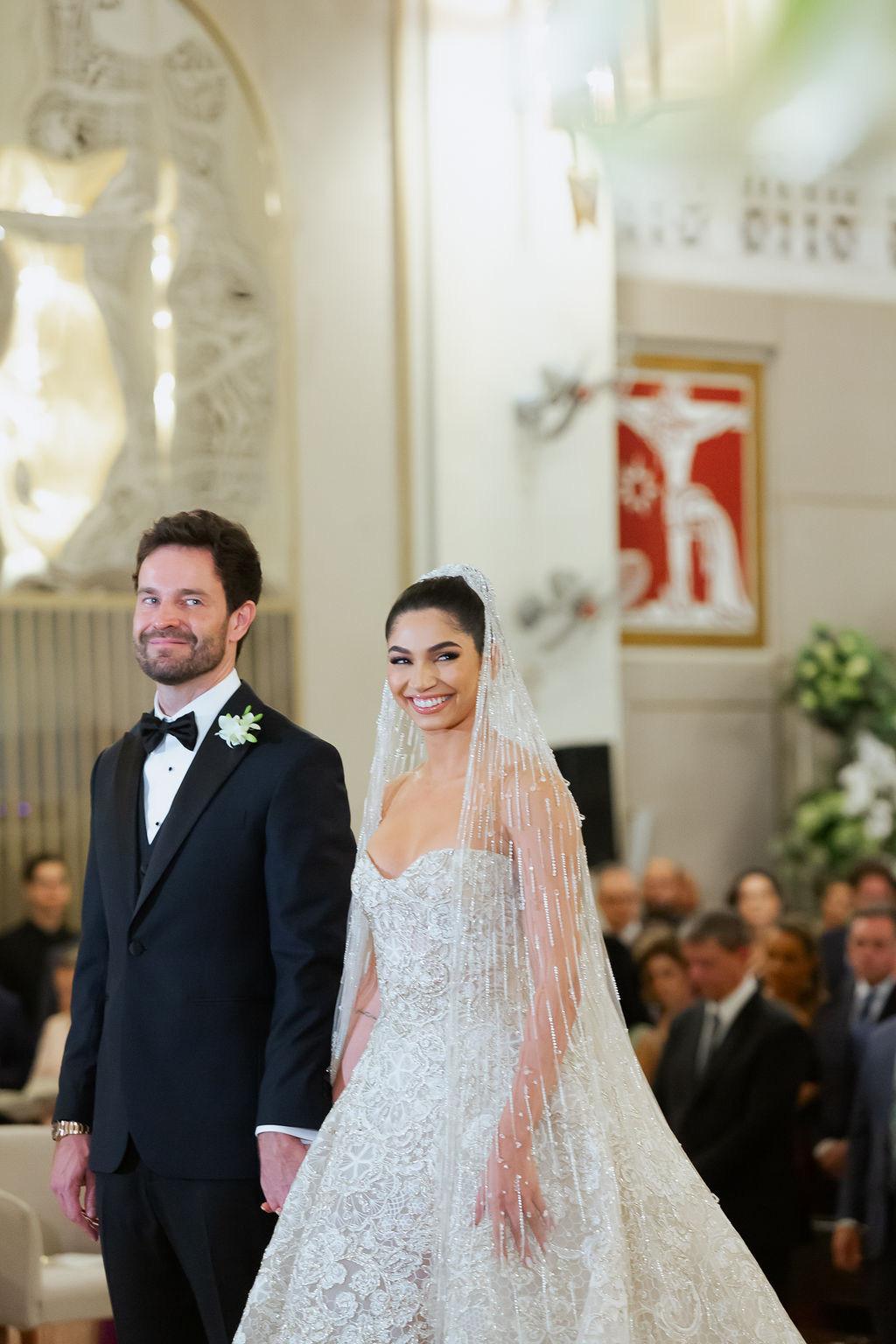 O sucesso desse casamento também se deve ao trabalho impecável de fornecedores renomados. A assessoria de Izis Dorileo coordenou todos os detalhes com maestria, garantindo que cada aspecto do evento fosse perfeito. A orquestra e o coral da Cia Sinfônica, com a participação de Paulo Benevides, trouxeram à cerimônia uma atmosfera de grandiosidade. O bar da Malibu Bartendes, que se tornou uma atração à parte, com drinks personalizados e gelo em cubos translúcidos com o monograma do casal, foi comandado por uma equipe de mais de 55 profissionais, que garantiram um atendimento impecável.
