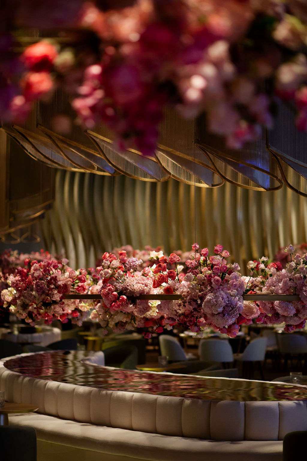 A decoração do evento traduziu em sua criação uma fusão entre o clássico e o contemporâneo, com toques de arte e design fluidos. “Eles me procuraram em busca de um projeto autoral, com referências de eventos internacionais e instalações de arte. Utilizei muito do design fluido, parametria e base cenográfica sob uma paleta de cores leve e marcante”, comentou o decorador Luis Fronterotta. A paleta de cores e a construção floral de volumes intensos, mas leves, criaram um ambiente inusitado e encantador.