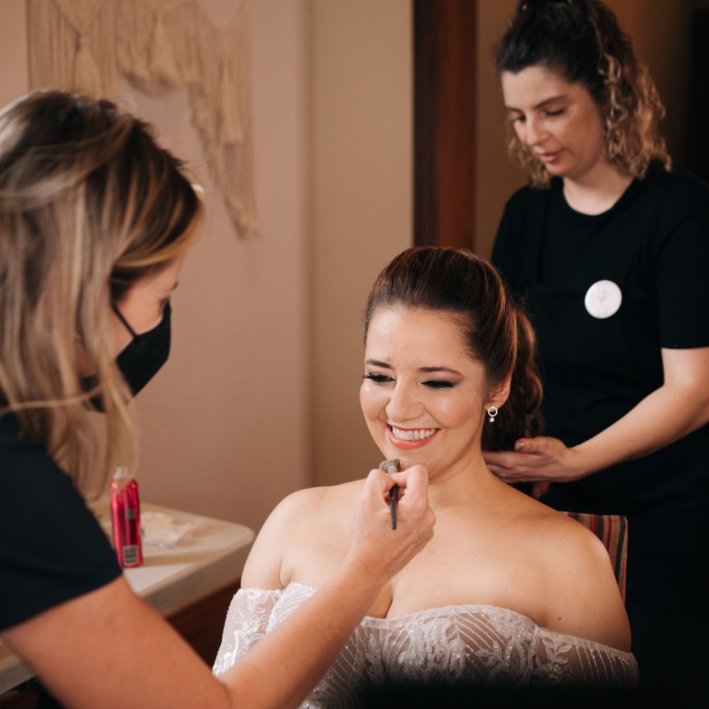 Somos especialistas em Destination Weddings e Pré-Weddings, e referência na técnica de maquiagem AirBrush. Cuidamos de cada etapa da concepção da sua beleza, desde o teste de maquiagem e penteado – para garantir que você se sinta plena e confiante – até a organização do cronograma do dia do casamento. Trabalhamos de forma alinhada com a assessoria e os fotógrafos para assegurar a pontualidade e fluidez de cada momento especial.